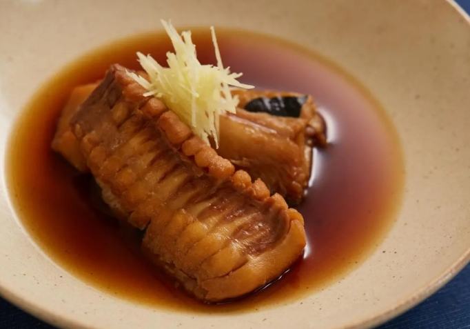• 安康魚(鮟鱇魚): 特別是它的「尾柄肉」部分,肉質非常結實、有彈性,且久煮不散,富含膠原蛋白,煮後口感滑溜Q彈。很適合燉煮類料理(如紅酒燉)。不過它的風味更濃郁一些,肉質的「纖維感」也比魟魚明顯。