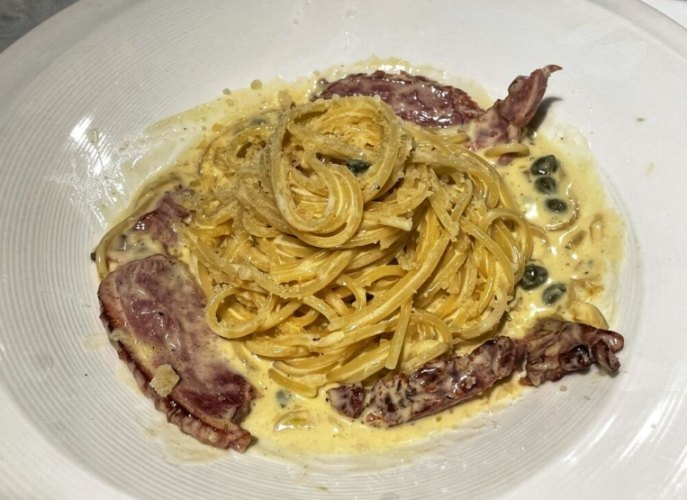 - 鯷魚的鹹鮮味是這道的靈魂!蒜香、辣椒香、鯷魚的鹹香,配上寬麵的Q彈,簡單卻層次分明。喜歡重鹹香風味的會很愛。