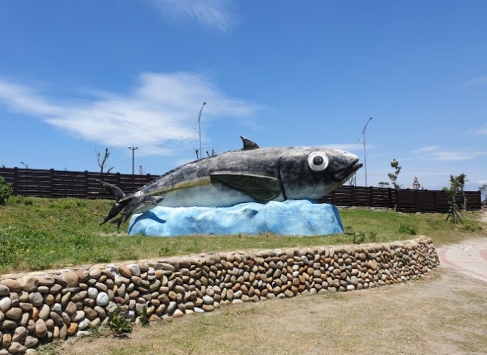 A: 很適合!有親子沙灘可玩沙(記得帶工具)、看魚船、場地空間大。但要注意:1. 漁產直銷中心人多擁擠地板濕滑,牽好小孩。2. 海邊堤防無圍欄,風大時要特別注意安全。3. 注意防曬防風。租腳踏車也有親子車款。